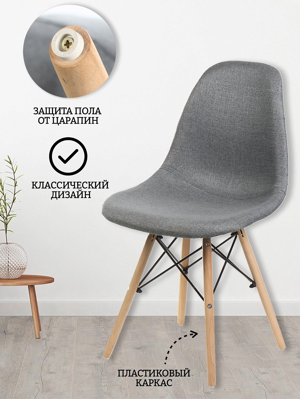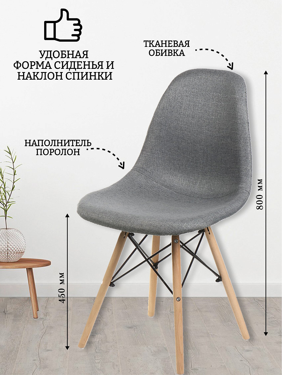 - Уникальный дизайн: квадратное сиденье и лаконичная серая ткань впишутся в любой интерьер