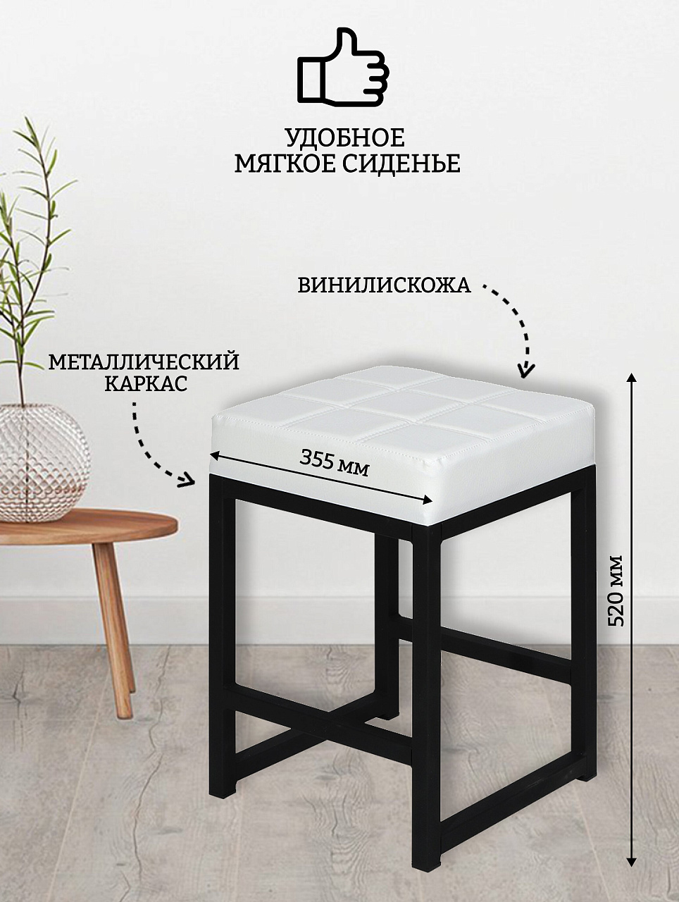 Стильный табурет 355х355х520 мм: лаконичный дизайн, мягкое винилискожаное сиденье и прочный металл — комфорт для кухни, дачи, гостиной. Закажите выгодно!