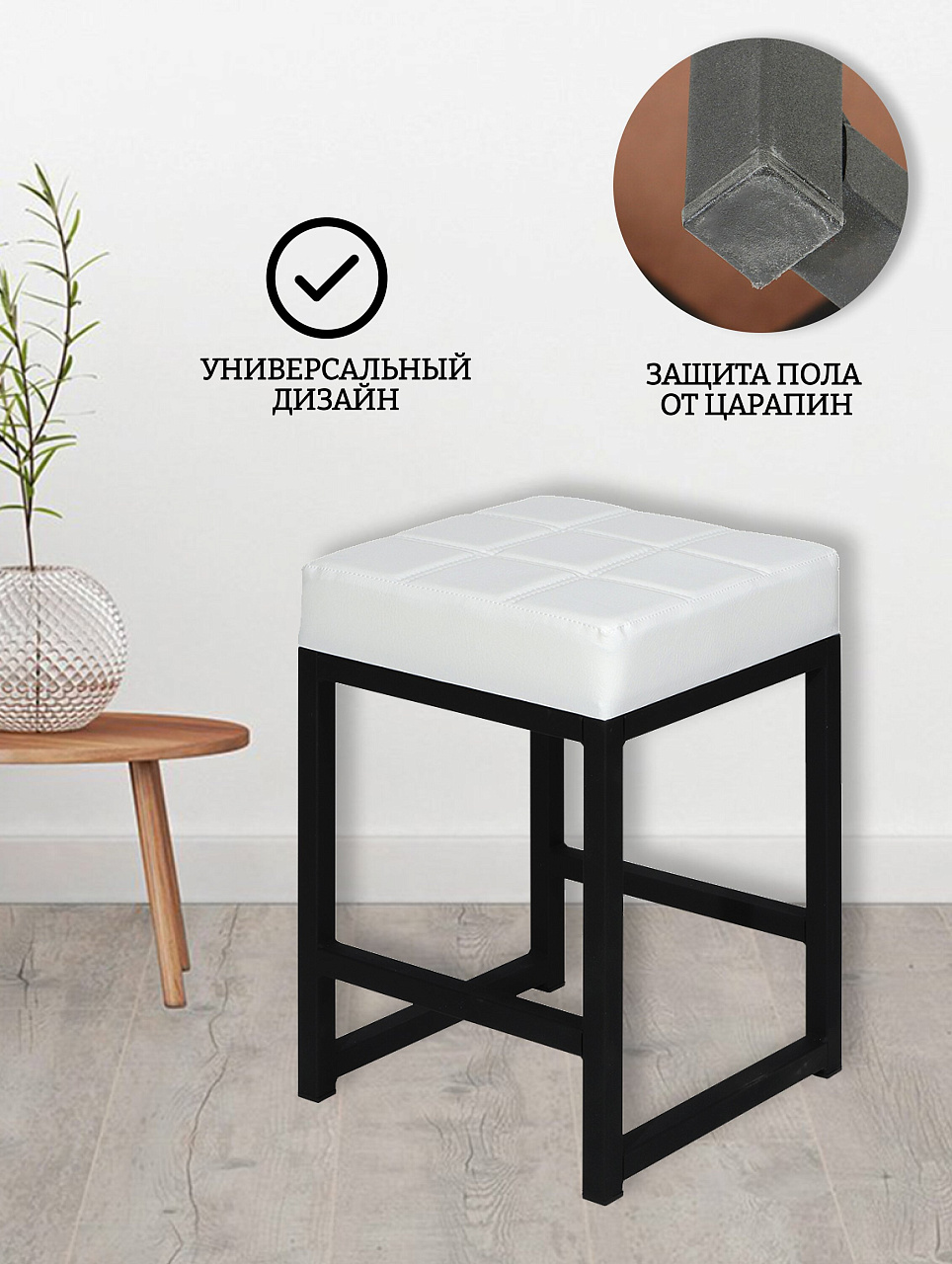 Табурет Модуль Лофт — это современное решение для тех, кто ищет, какой табурет выбрать для кухни или гостиной. Мягкое квадратное сиденье из винилискожи обеспечивает комфорт даже при длительном использовании, а каркас из металла гарантирует устойчивость и долгий срок службы. Благодаря болтовому креплению конструкция максимально надёжна, что отличает эту модель от аналогов на заклёпках или клею.