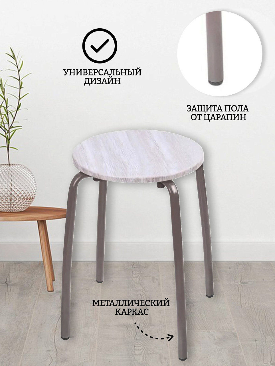 Табурет 320х320х460 мм Nika — компактное решение для кухни и дачи: металл+МДФ, выдерживает до 120 кг, стиль «дуб винтаж белый».