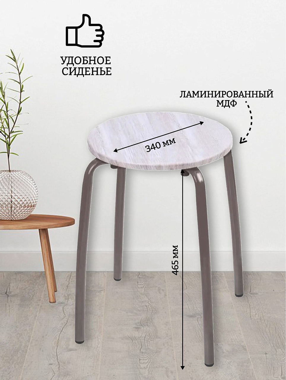- Практичность и надежность: прочный металлический каркас, сиденье из МДФ, выдерживает нагрузку до 120 кг, оптимальные размеры 320х320х460 мм