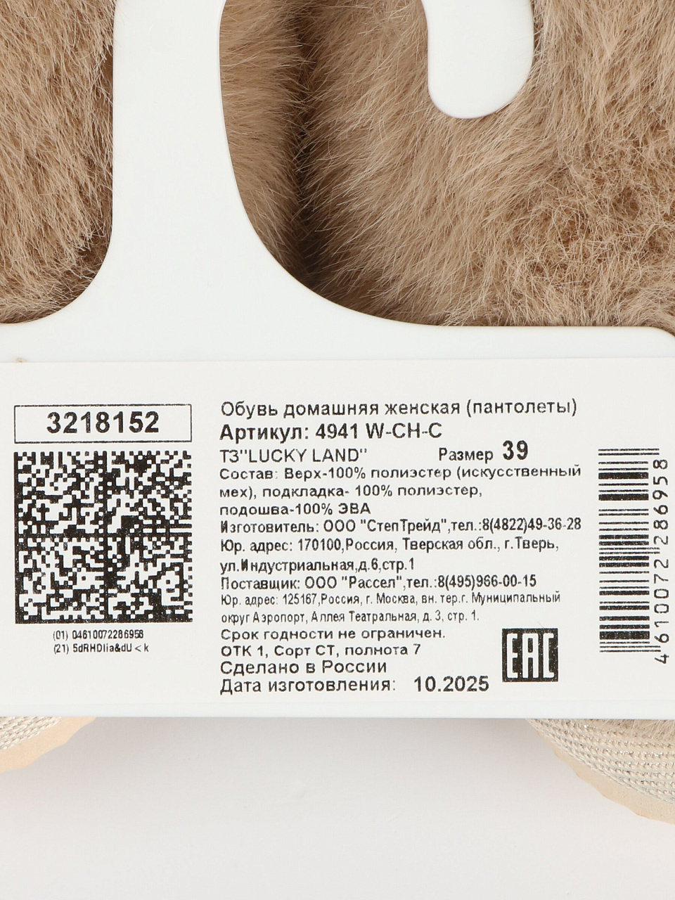 Тапки женские закрытые Lacky Land 4941W-CH-C, размер 39: уют, стиль и комфорт для дома и дачи по выгодной цене — отличный подарок для заботы о близких.