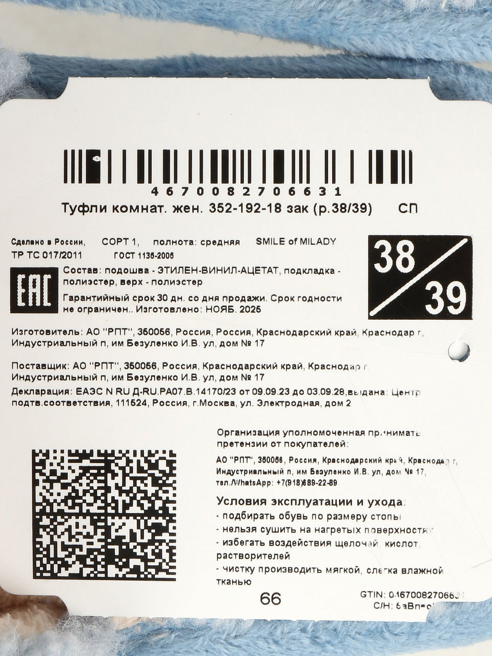 Закажите женские текстильные тапки р.38-39 прямо сейчас — получите выгодную цену, гарантию качества и быструю доставку по вашему адресу.
