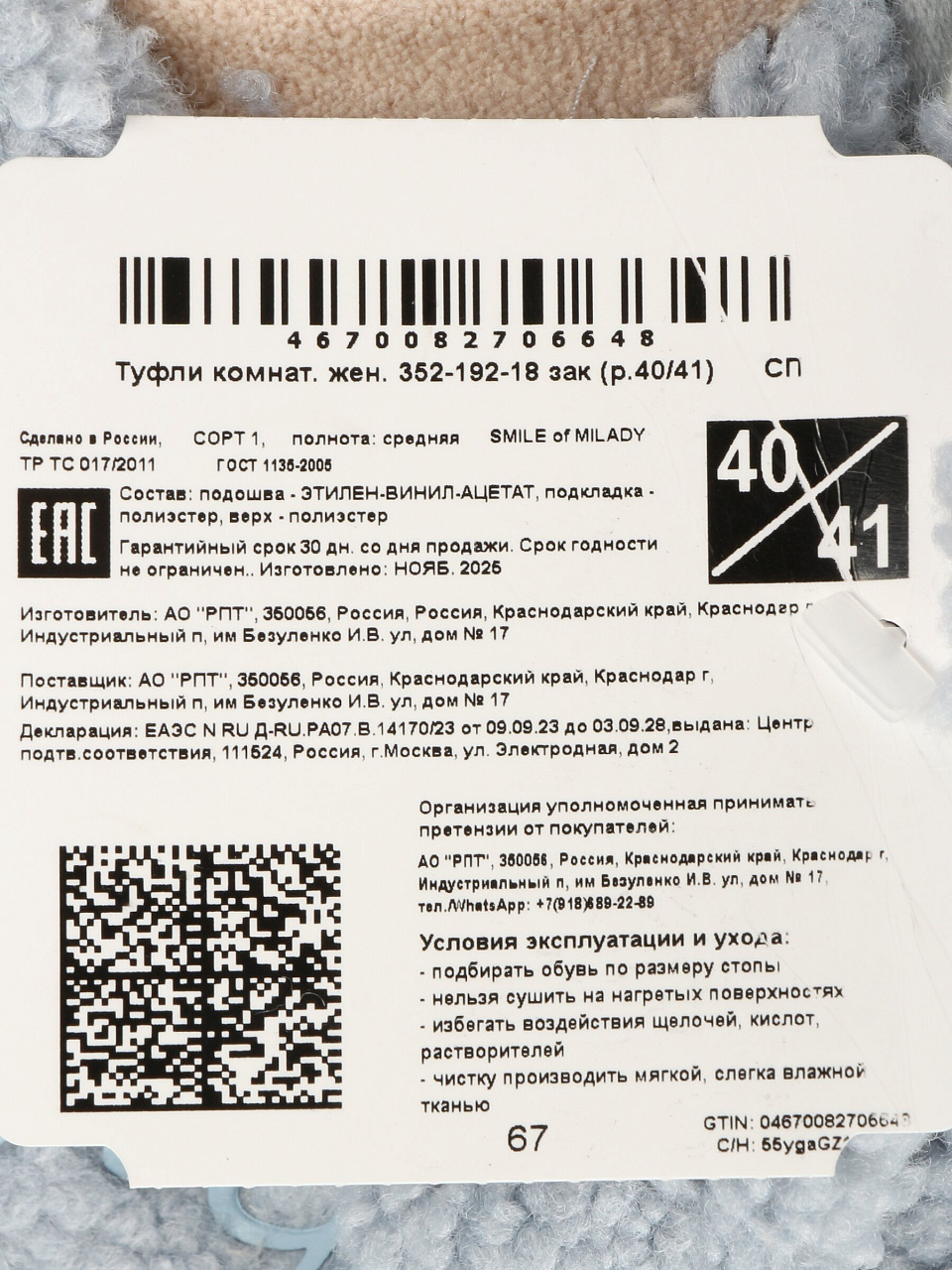 Вы можете приобрести «Тапки для женщин, текстиль, серые, р. 40-41, закрытые, 352-192-18» и другие товары в нашем интернет-магазине в Обнинске по низким ценам и с бесплатным самовывозом.