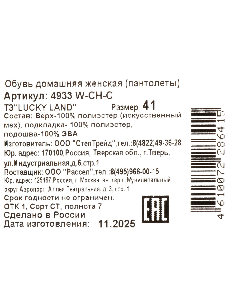 Вы можете приобрести «Тапки для женщин, в ассортименте, р. 41, закрытые, Lacky Land, 4933W-CH-C» и другие товары в нашем интернет-магазине в Курске по низким ценам и с бесплатным самовывозом.