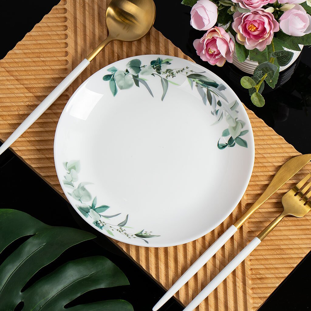 Если вы ищете, чем отличается стеклокерамическая тарелка от фарфоровой — стеклокерамика более устойчива к царапинам и не впитывает запахи. Модель Daniks «Эвкалипт» — это баланс цены и качества, выгодно купить недорого тарелку для дачи или дома вы можете прямо сейчас.