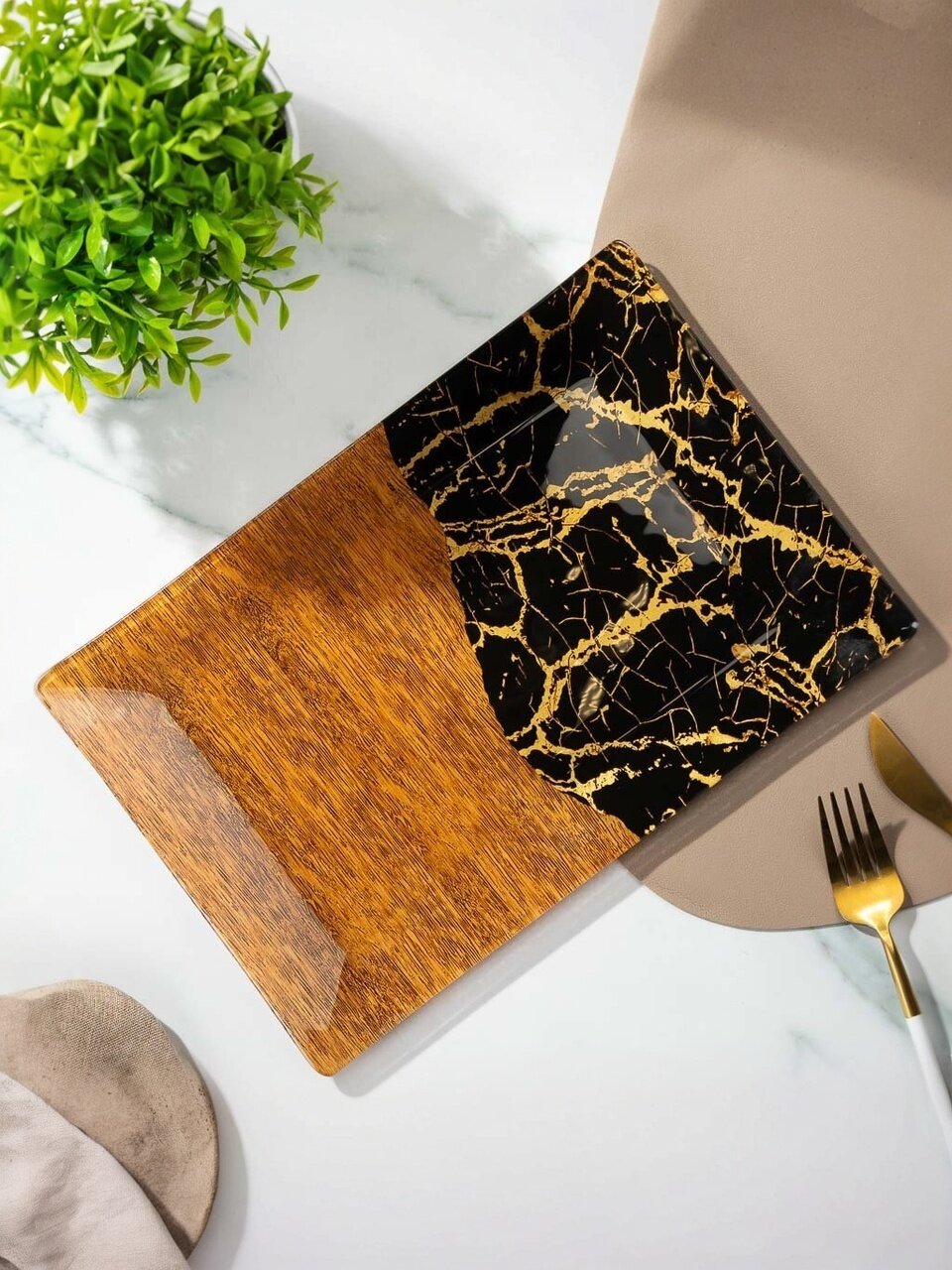- Уникальный дизайн «под мрамор» — эффектная сервировочная тарелка для стильной подачи и декора