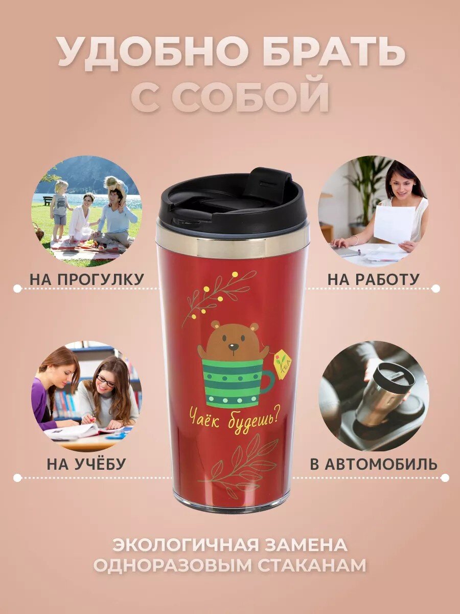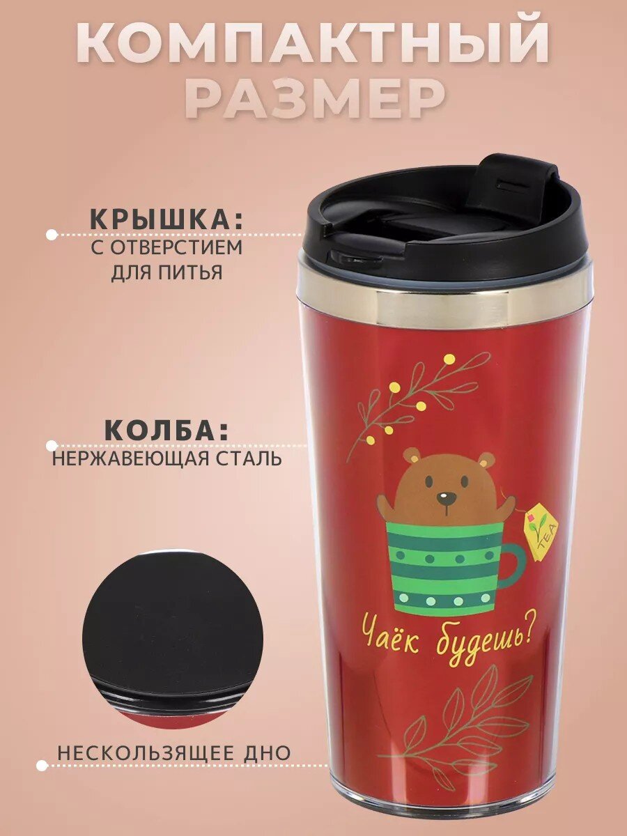 Термокружка Daniks "Чаек будешь", 0.42 л: сохраняет напитки горячими до 2 часов, стильный дизайн, прочная нержавеющая сталь — идеальный выбор для города и авто.