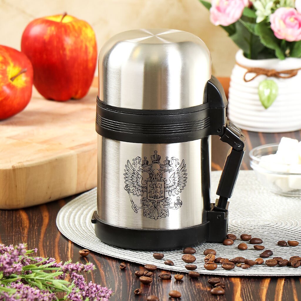 Термос выполнен из качественной нержавеющей стали, которая не вступает в реакцию с содержимым термоса и не изменяет вкусовых качеств напитка. Двойная стенка из нержавеющей стали сохраняет температуру напитков на длительный срок.
