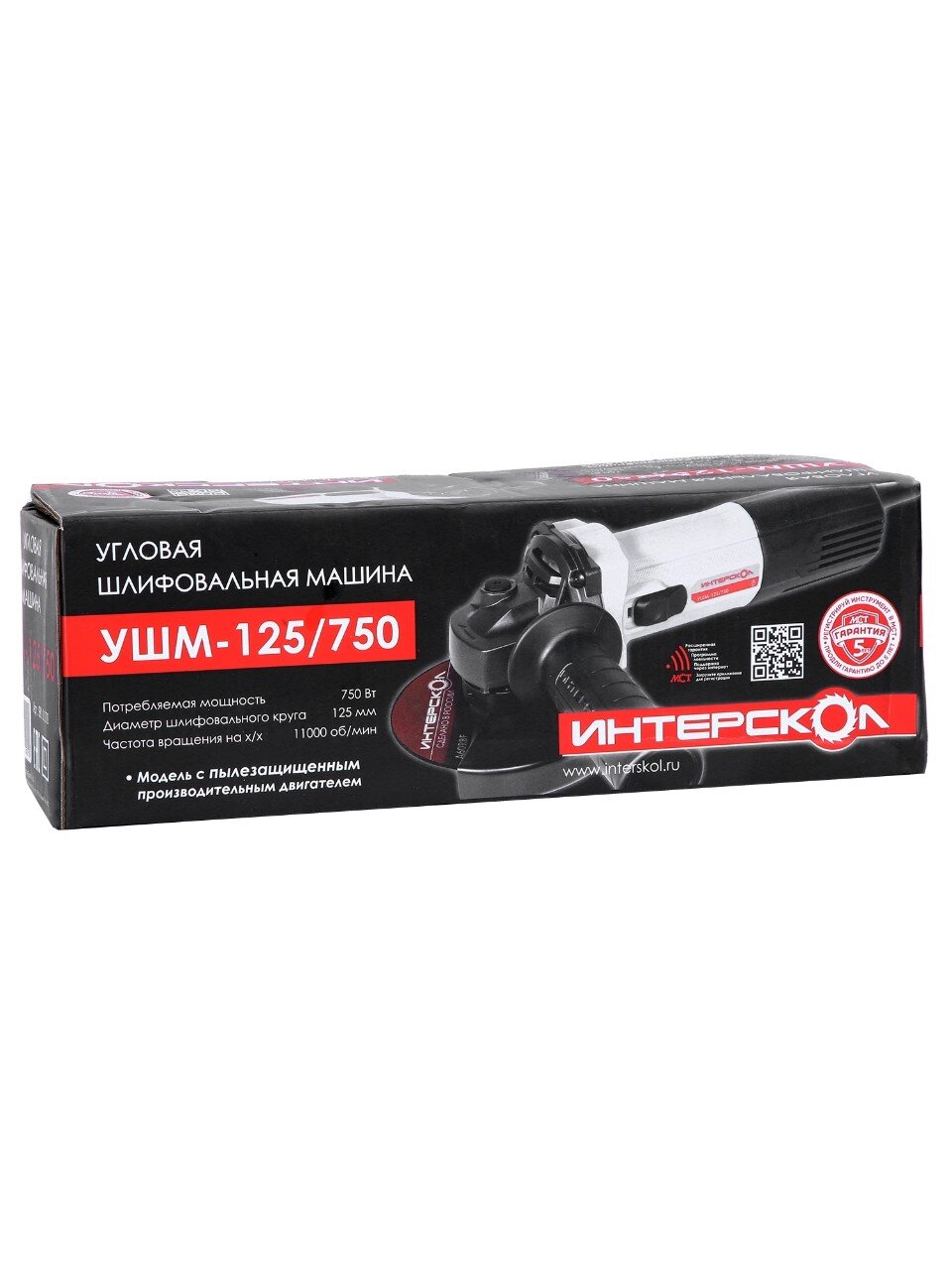 Угловая шлифовальная машина Интерскол УШМ-125/750 — надежное решение для резки и шлифовки металла, бетона и камня. 750 Вт мощности, диск 125 мм, 2 года гарантии.