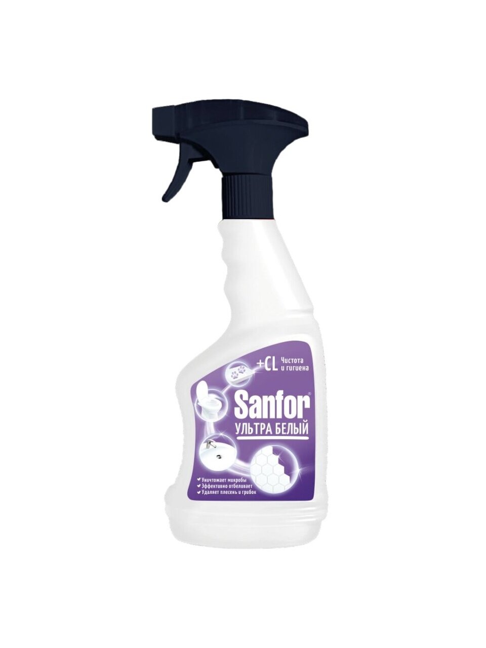 Универсальное чистящее средство для ванной комнаты и туалета. Средство предназначено для чистки и ухода за раковинами, ваннами, душевыми кабинами, унитазами, керамической плиткой, настенными панелями, моющимися обоями, бытовой техникой. Подходит для уборки туалетов для животных. Sanfor спрей "Ультра Белый" обладает антимикробным эффектом и подходит для ежедневного применения. Оставляет после уборки аромат чистоты и свежести. Эффективная формула спрея Sanfor "Ультра Белый" отлично отбеливает и чистит поверхности по всему дому, уничтожает микробы, удаляет плесень, жир, грязь, мыльные потеки, серый налет, пятна различного происхождения.