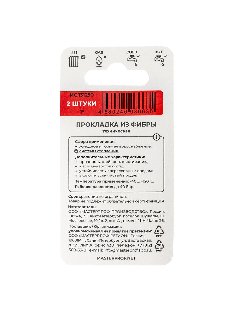 Вы можете приобрести «Прокладка сантехническая 2 шт, 1", фибра, MasterProf, индивидуальная упаковка, ИС.131250» и другие товары в нашем интернет-магазине в Клинцах по низким ценам и с бесплатным самовывозом.