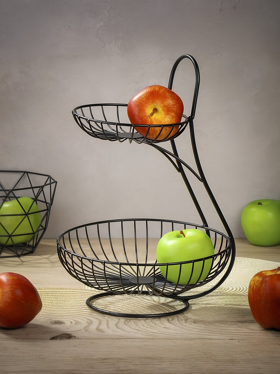 - Два вместительных яруса: компактно разместите больше фруктов и десертов, экономя место на столе/