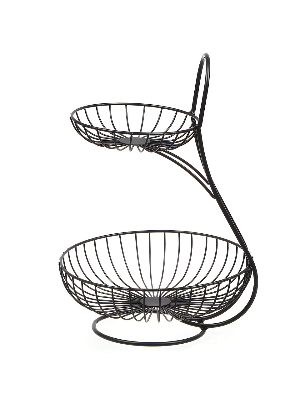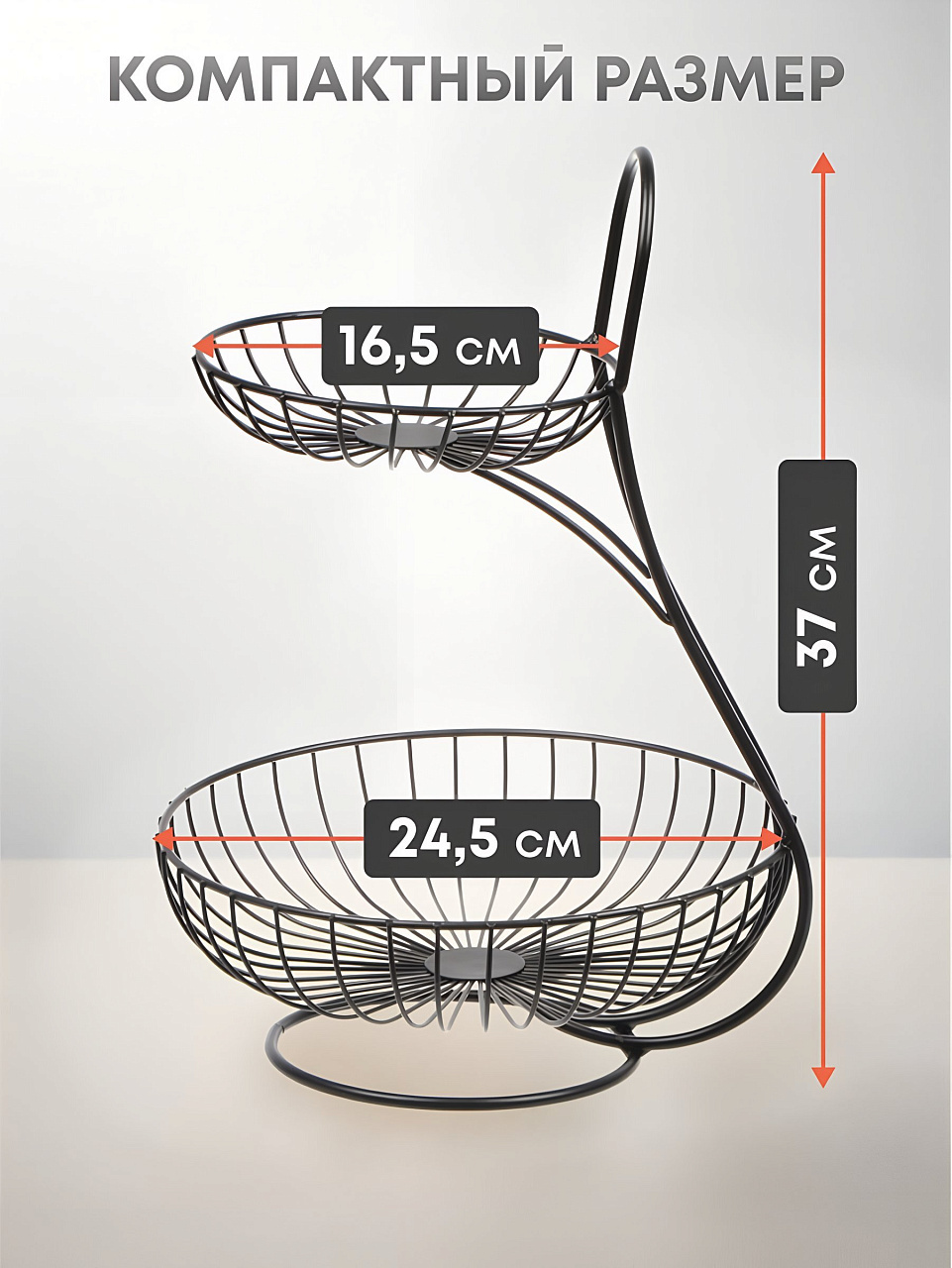 Стильная двухъярусная фруктовница из чёрного металла 25х25х37 см — эффектное решение для хранения и сервировки фруктов дома и на даче. Удобство, прочность и современный дизайн.