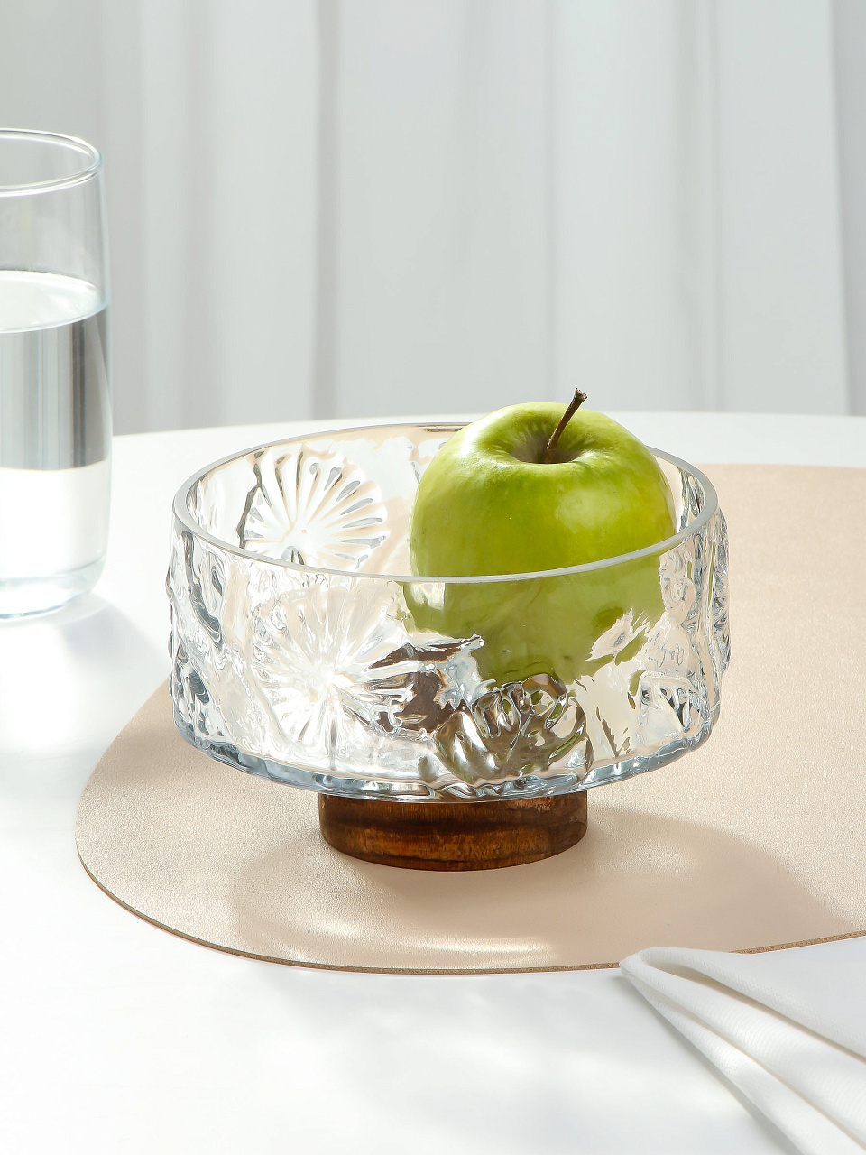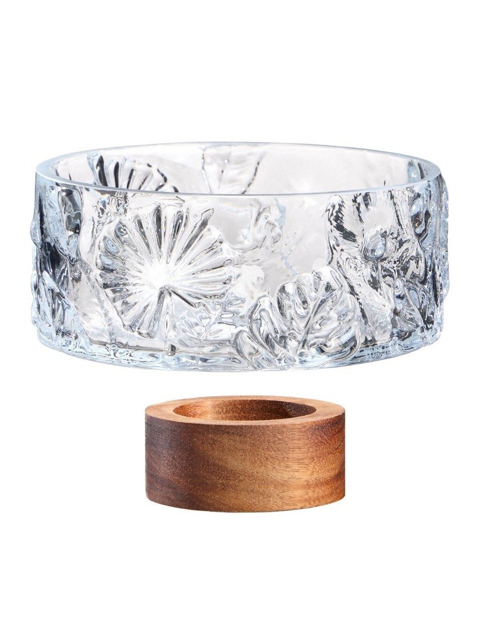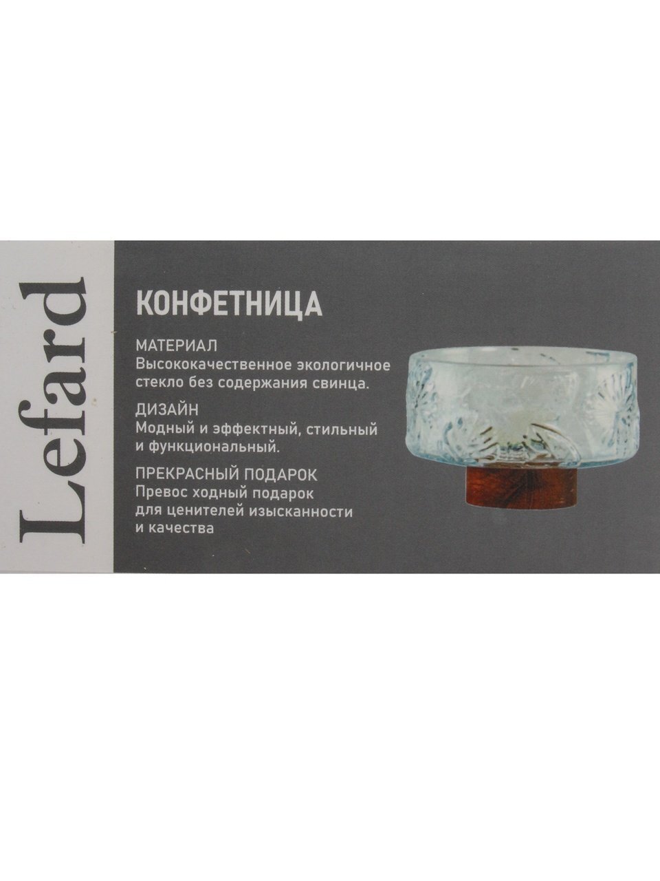 Ваза для конфет Lefard Flora 14х9 см — стильное стекло, дерево акации, подарочная упаковка. Идеальный подарок и практичное решение для любого интерьера.