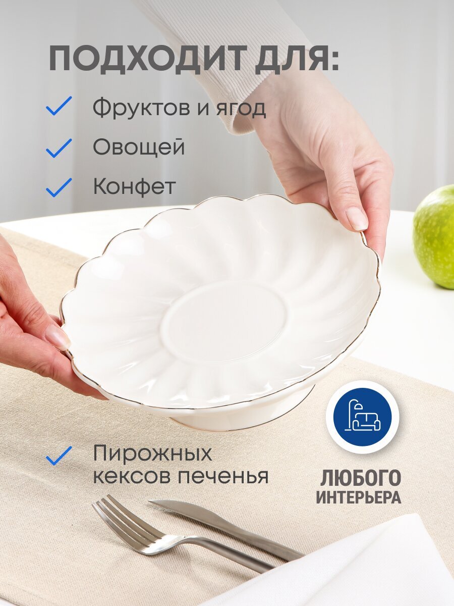 Элегантная ваза для фруктов на ножке из фарфора (20 см) — стильный акцент для вашего стола, долговечность и премиальный дизайн по доступной цене.