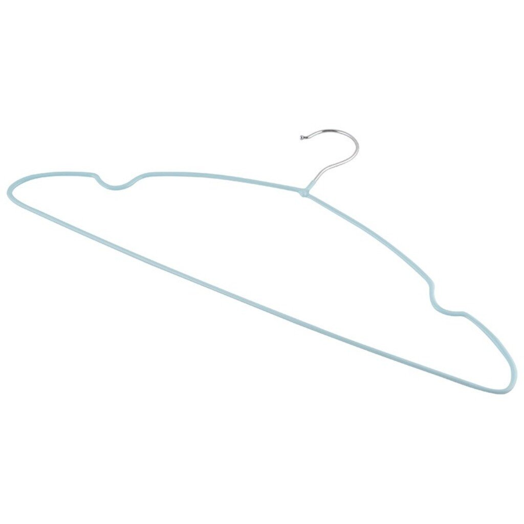 В комплекте 5 металлических вешалок с ПВХ-покрытием, длина каждой — 40 см, цвет — бирюзовый (артикул 006834).