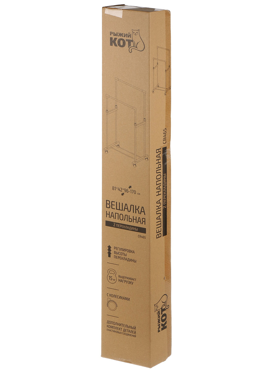 Вешалка напольная Рыжий кот с двумя перекладинами — это оптимальный вариант для тех, кто ищет, как компактно разместить верхнюю одежду, брюки, юбки, ремни и аксессуары. Благодаря прочной конструкции из нержавеющей стали и максимальной нагрузке до 15 кг, изделие выдерживает даже тяжелые пальто и куртки, не теряя устойчивости. Телескопическая регулировка высоты (96-170 см) позволяет адаптировать вешалку под разную длину вещей — от детских до взрослых.