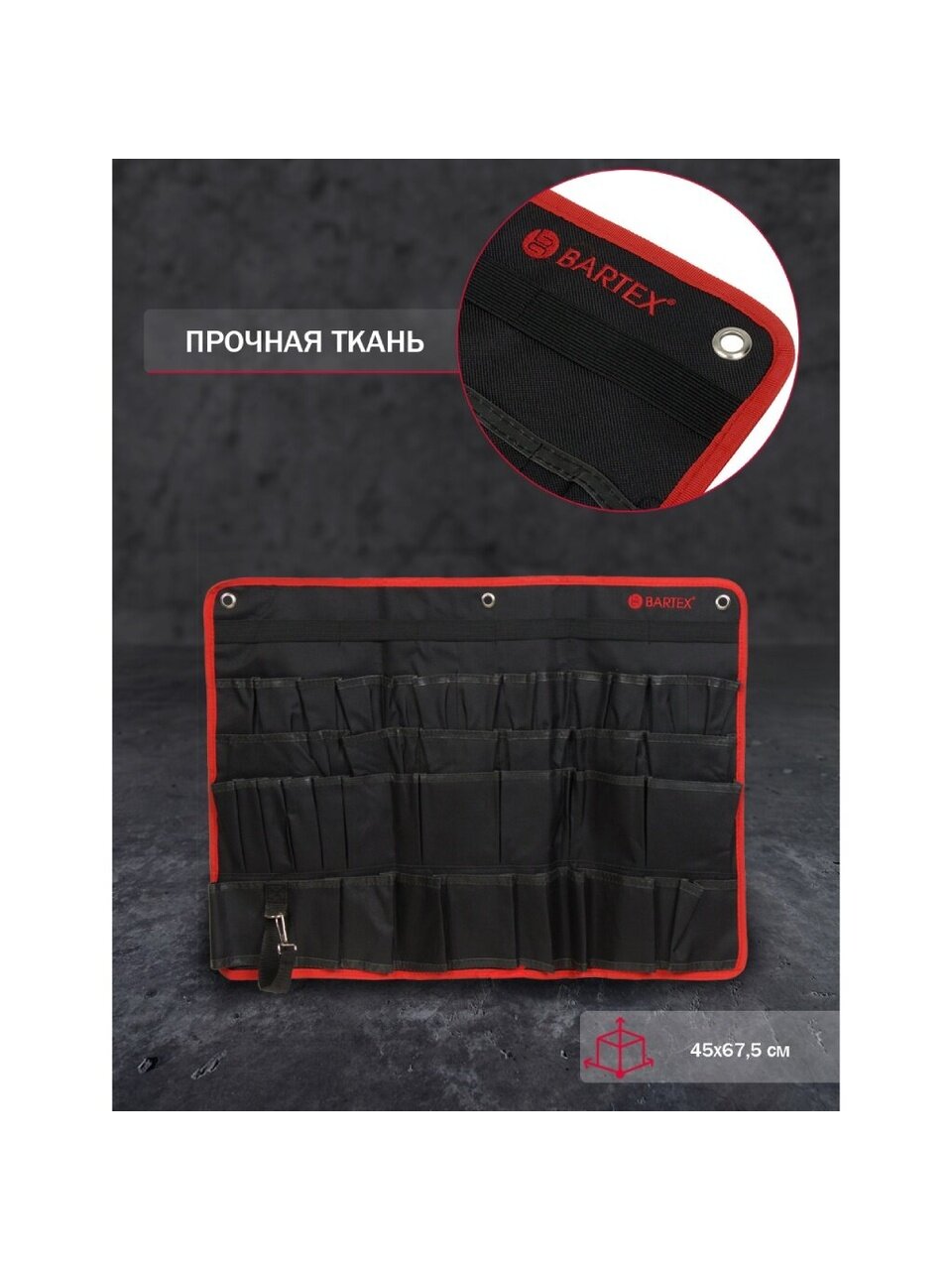 Сумка для инструментов Bartex поможет Вам оптимизировать пространство в рабочей зоне, упростить процесс ремонта и сократить время на поиски нужного инструмента. Вы можете использовать раскладку любым удобным способом: закрепить ее на стене для быстрого доступа к нужным инструментам, либо сделать из нее сумку-скрутку и взять весь необходимый инвентарь с собой.