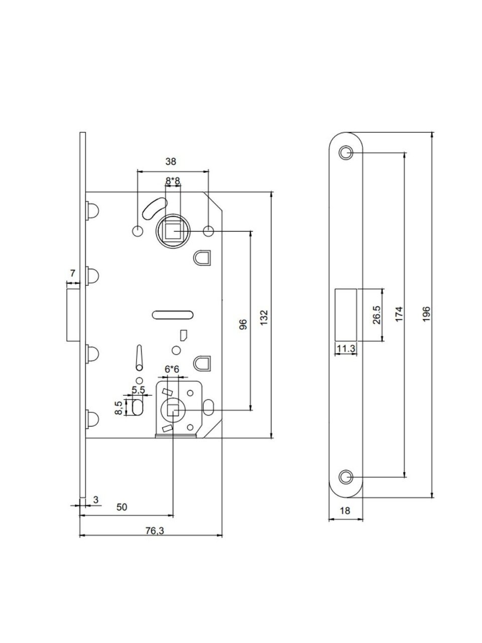 - Размер сечения квадрата фиксатора: 6 мм;
