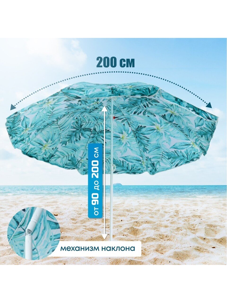 Вы можете приобрести «Зонт пляжный 200 см, с наклоном, 8 спиц, металл, Тропические листья, LG07/2» и другие товары в нашем интернет-магазине в Смоленске по низким ценам и с бесплатным самовывозом.